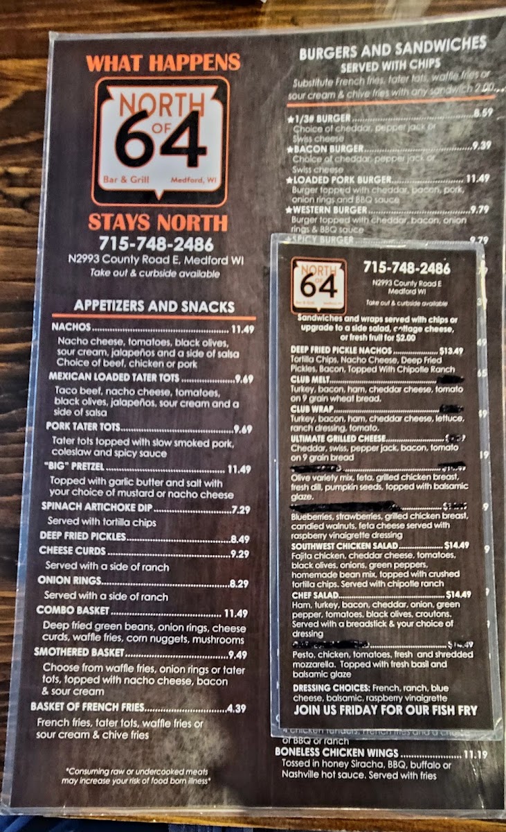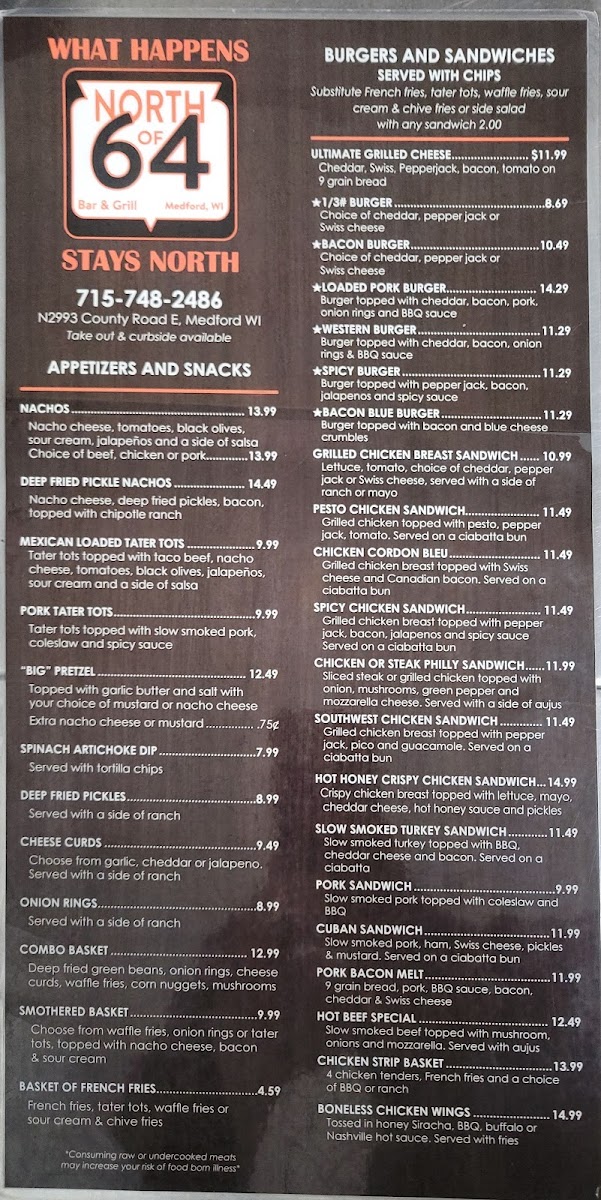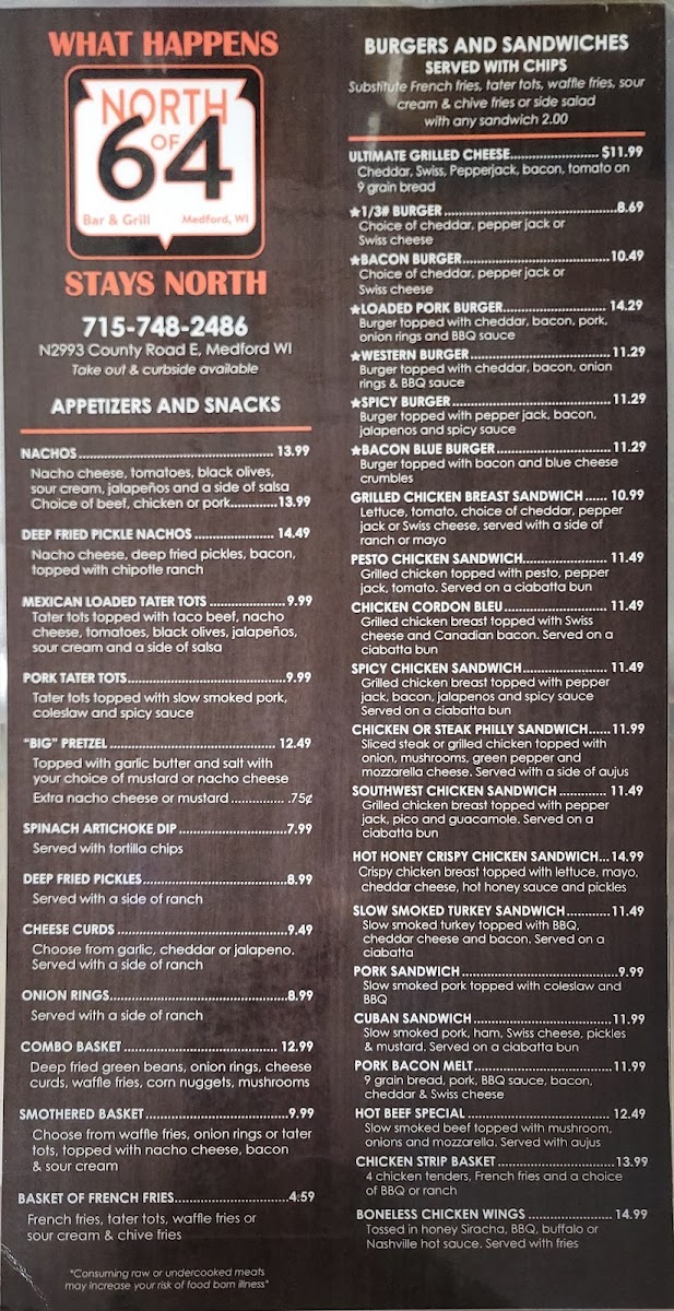 The menu at 64 North Bar & Grill offers a relaxed and approachable selection that suits a variety of casual dining moments. With an emphasis on satisfying, straightforward options, you can expect comforting bar favorites alongside thoughtfully prepared drinks that complement the inviting atmosphere.